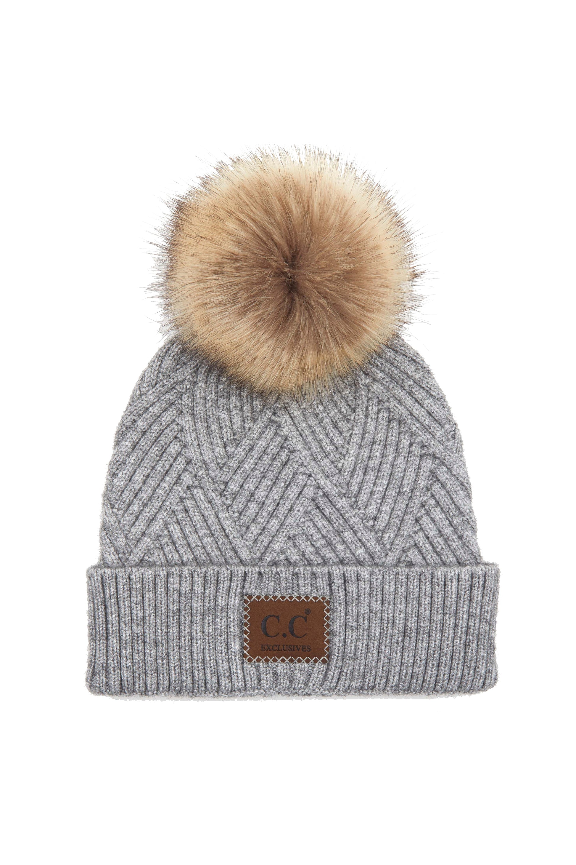 Accessorize any outfit with our cute knit winter hats with super soft faux fur pom