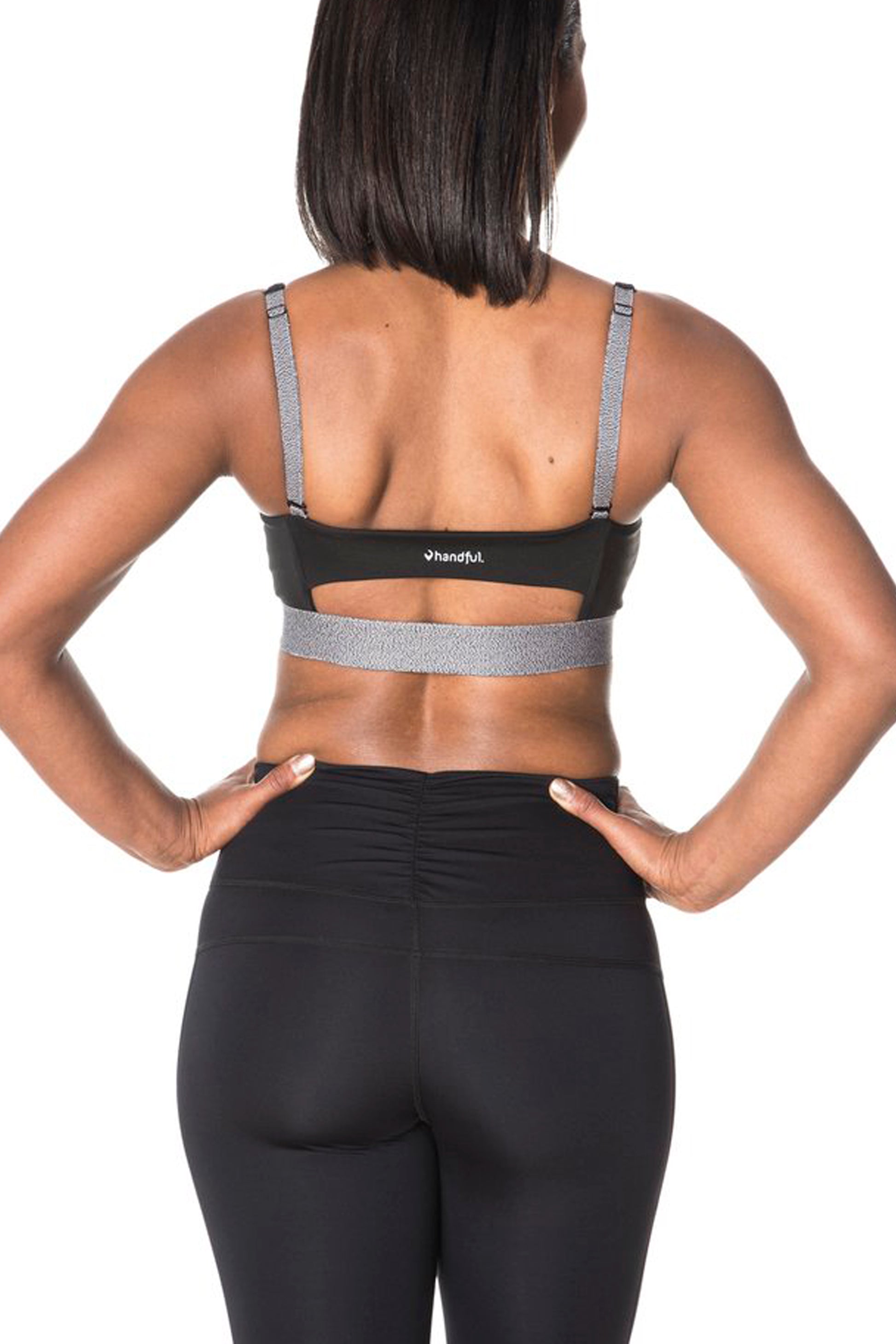 Heathered elastic on the back and straps make this a fashion play as well as a solid performer for whatever activity is at hand. Adjustable and convertible straps can play it straight, X-back, or be worn around the neck as a halter.
