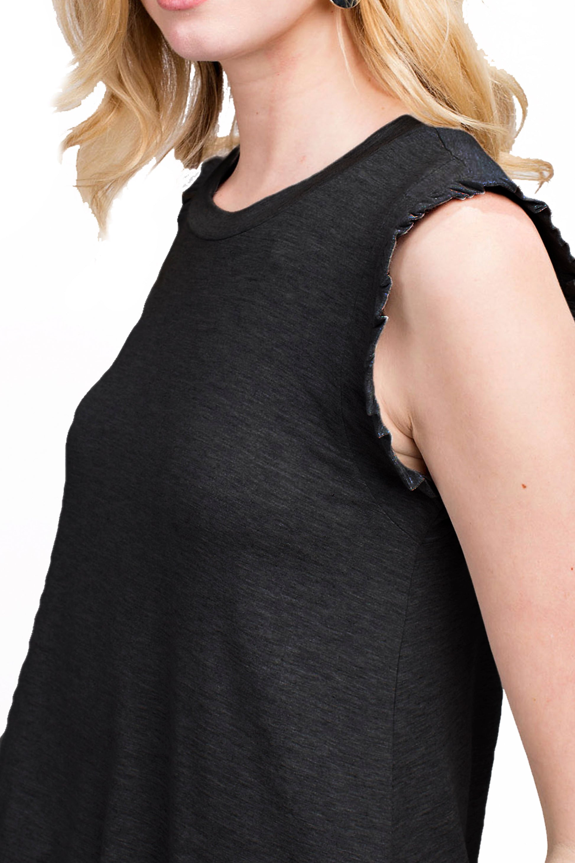 4009 - Ruffle Neck Tank Top/ Black - FINAL SALE