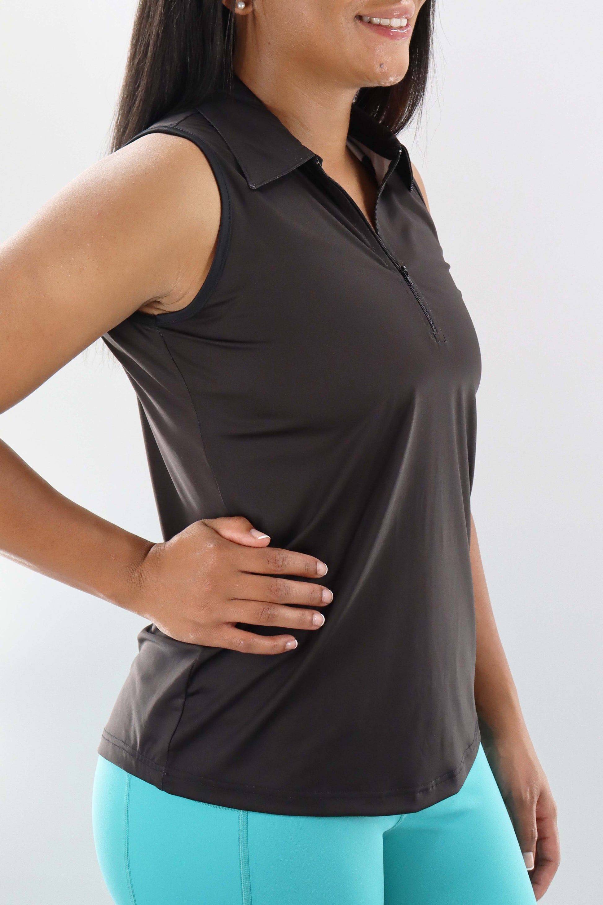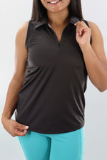 4110 - Womens Sleeveless Polo - Black - FINAL SALE