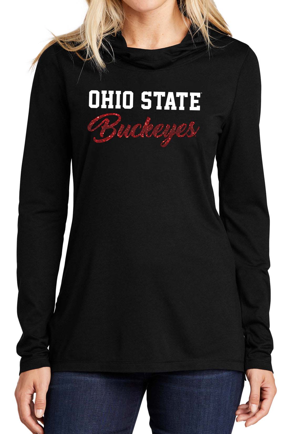 Get ready to show your Buckeye pride with this super lightweight & comfy hoodie. With a touch of sparkle in the printed logo, you will stand out in a crowd of scarlet and grey! Perfect for those Fall Days where it's cold in the morning. Lightweight enough to tie around your waist when it gets too hot!