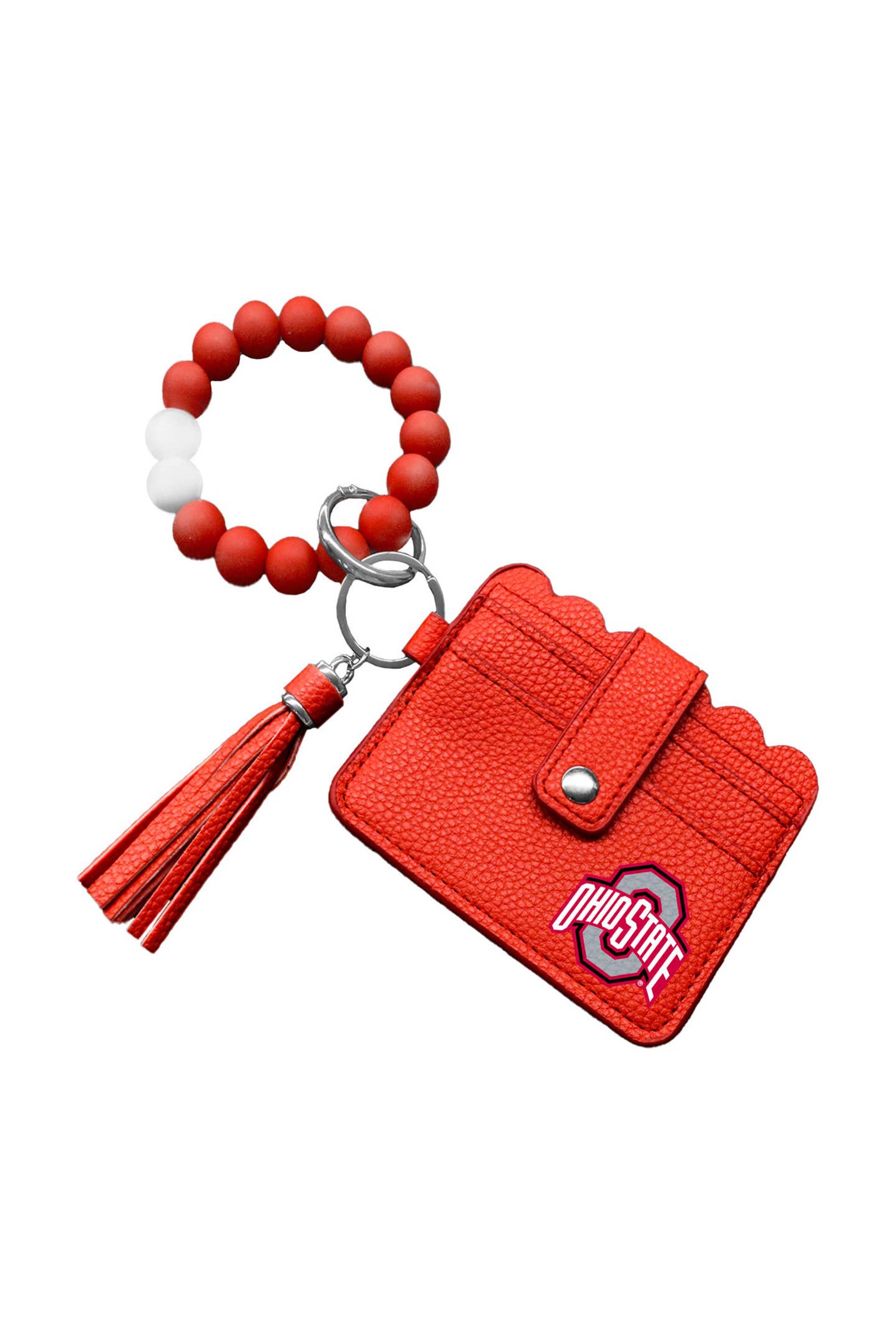 The Bracelet Wallet is a stylish and practical accessory that combines convenience with team spirit. Featuring a silicone bead elastic bracelet for easy carrying, this wallet also includes a 3.25” leatherette tassel for a trendy touch. Designed for functionality, it has a snap button closure, 1 clear ID window, and 2 card slots, making it perfect for keeping your essentials secure.