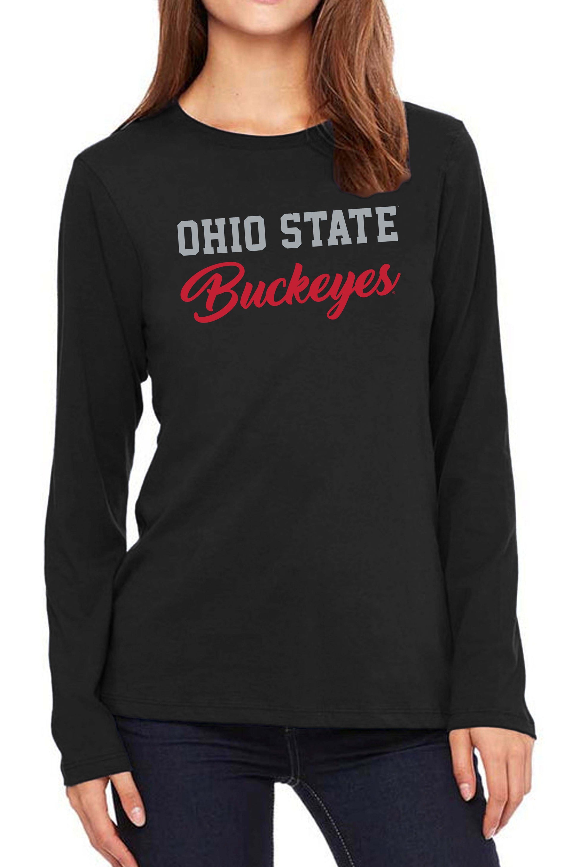 Get ready to show your Buckeye pride with this super soft unisex long sleeve tee. With a scarlet and grey printed logo, you will stand out in a crowd of Buckeye fans! Perfect for those Fall Days!