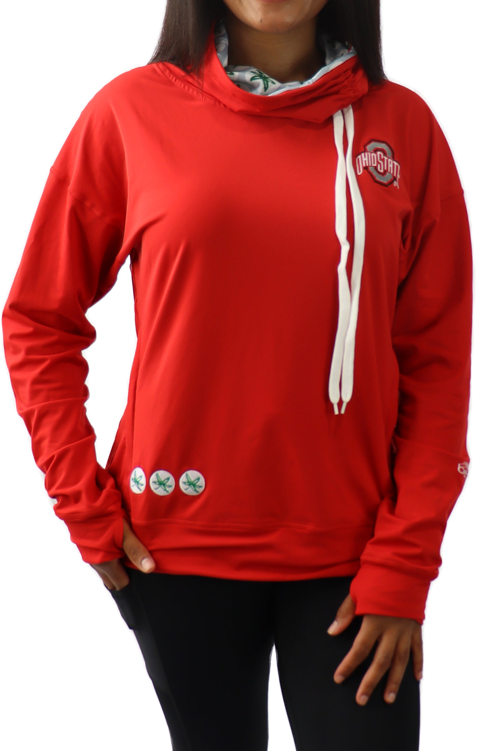 Our women's Luxe mock neck pullover is the perfect addition to your Buckeye wardrobe. This mid-weight, cozy top will keep you warm at those chilly morning tailgates, but won't take away from your style! Drapey Stye and even runs a tad large in our opinion!