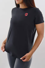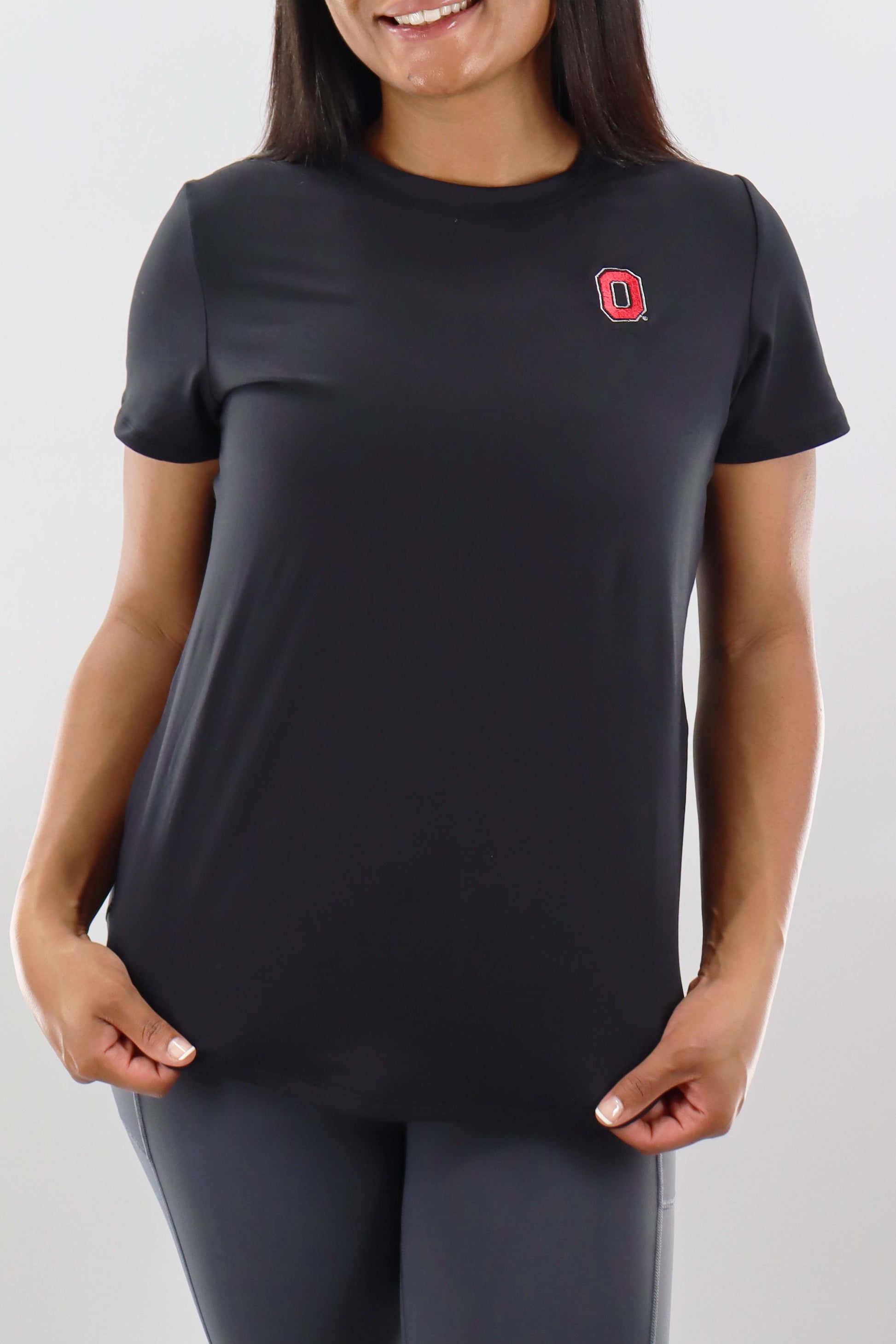 Ditch your boring old t-shirt for this super soft (like Butta!) Tshirt with a stylish open back. Pair our criss cross back bra for a pop of color! Gear up and cheer on our Buckeyes!