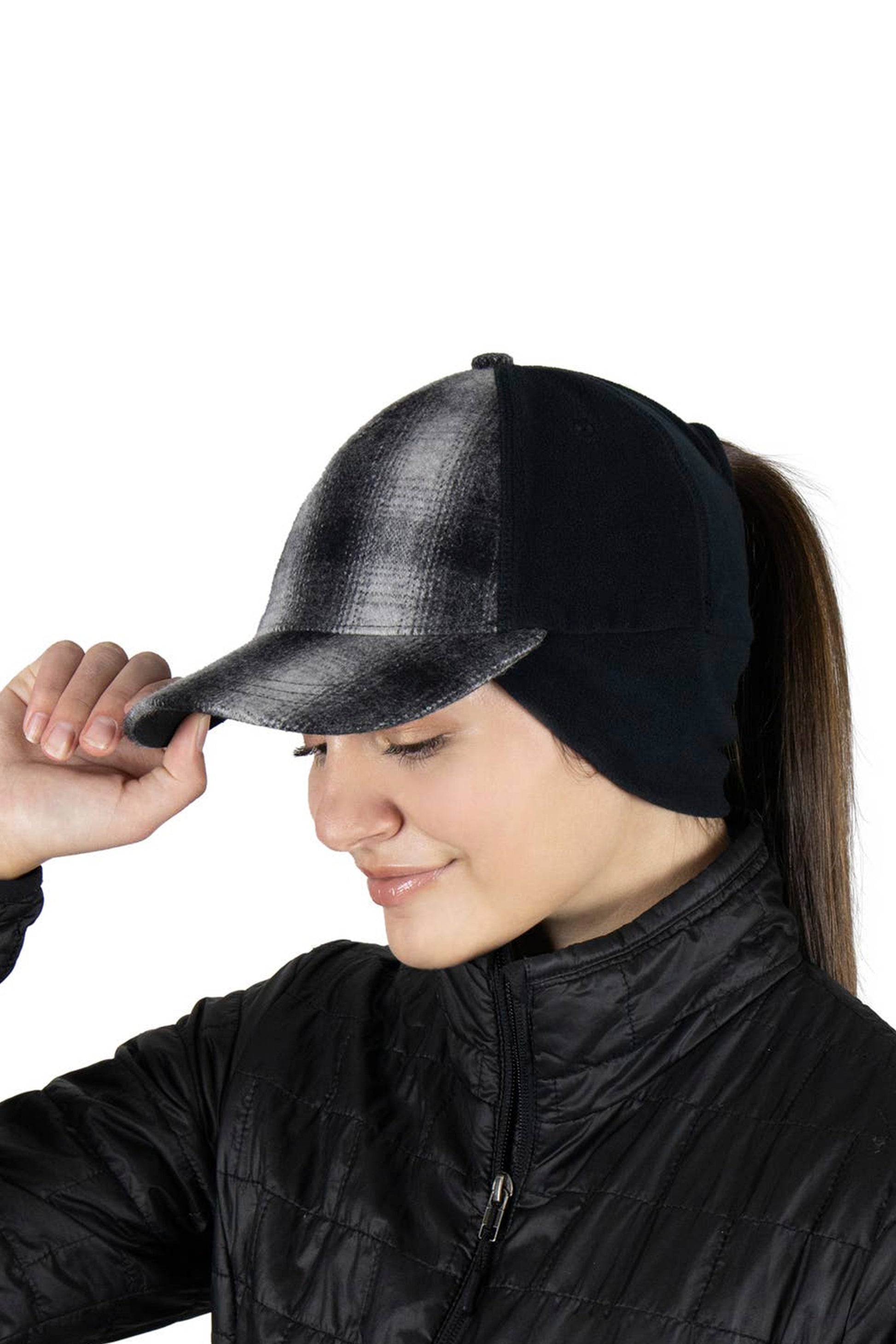 This ponytail hat has a slot style ponytail opening. The ponytail hole is at the back center of the hat above the ears, perfect for a high ponytail. Prefer to wear your hair down? The ponytail hole completely closes when not in use to keep warmth in.